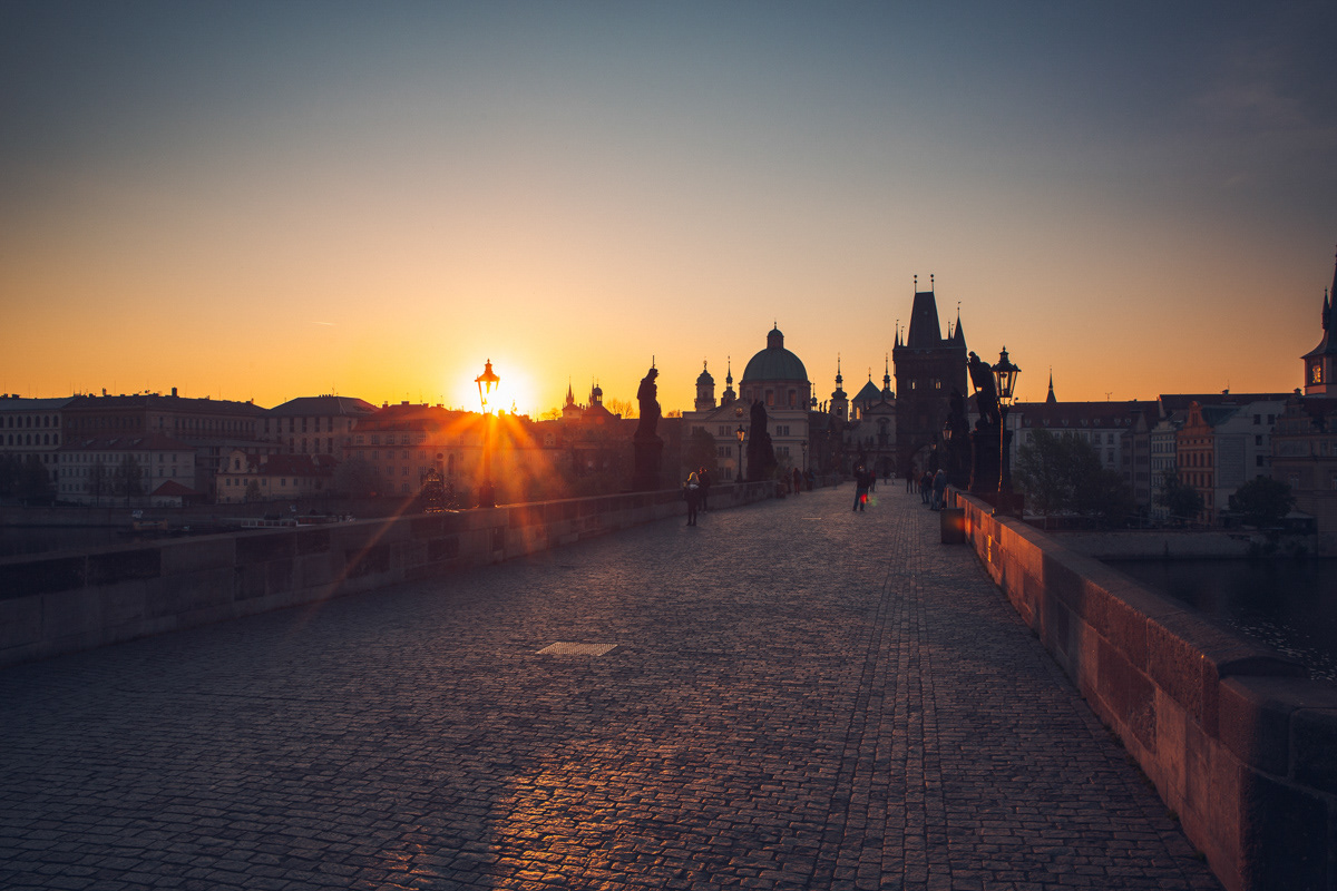 Prázdná Praha za časů Covidu. Prý to ale takto vypadá i v případě turistů, východ slunce v Dubnu je přibližbně v 6 ráno. 😉